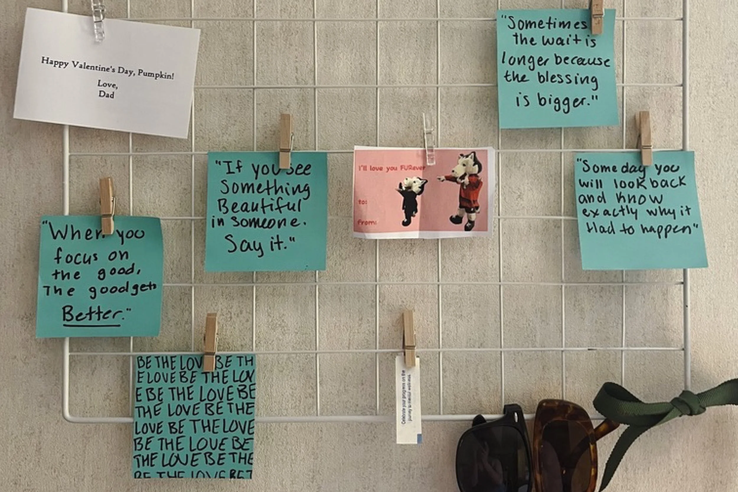 Above my bed I have a pinboard with photos, some ribbons, my sunglasses, and five or six sticky notes with quotes and reminders on them. I started doing this at the beginning of my freshman year of college, and it has become one of my favorite corners of my room. Scrolling on TikTok, I get lots of videos of people posting movie or book quotes and for some reason, I can’t skip them. While I am a realist in some regard, I am a complete romantic when it comes to most aspects of my life. Why not be a little hopeful?